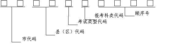 考生準(zhǔn)考證號(hào)由市招辦編排,原則上同學(xué)?;蛲嗉?jí)考生不得連號(hào)。準(zhǔn)考證號(hào)的10位阿拉伯?dāng)?shù)字含義如下:
