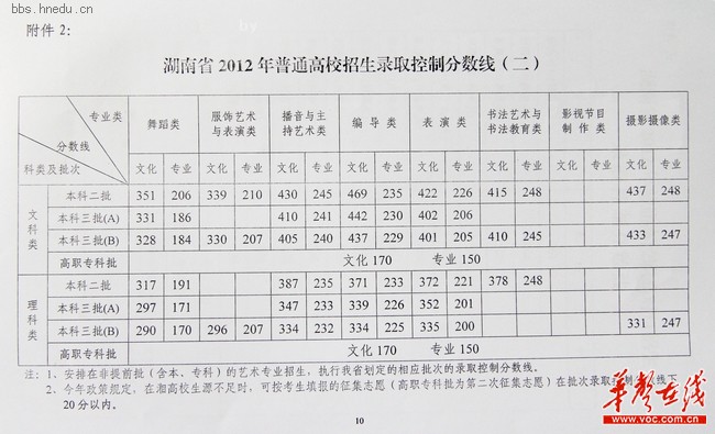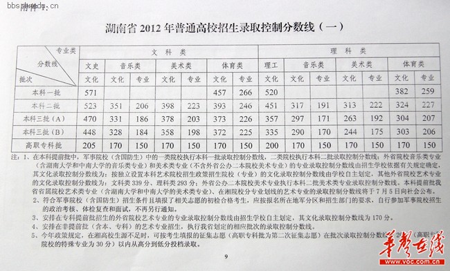 華聲在線訊 湖南省教育考試院今日正式對外發(fā)布2012年湖南普通高招錄取控制分數(shù)線。