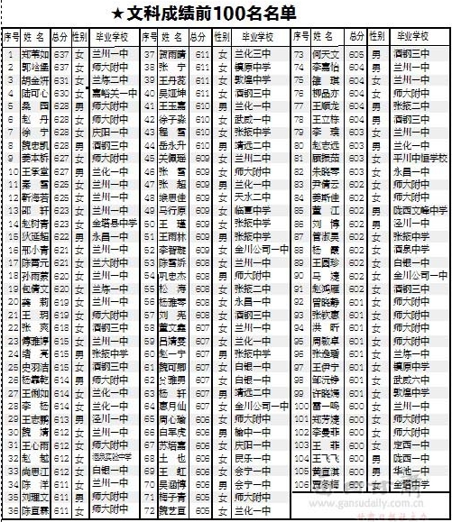 下一篇文章:甘肅省2012年高考理科前百名榜單出爐