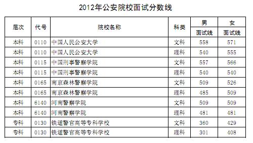 2012年公安現(xiàn)役院校面試、軍檢分?jǐn)?shù)線
