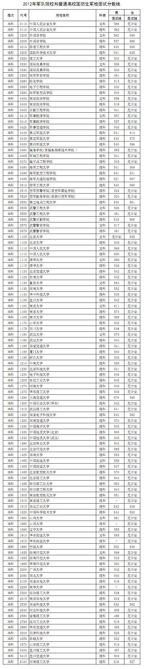 現(xiàn)將軍隊(duì)、公安和部分司法類院校面試分?jǐn)?shù)線公布如下: