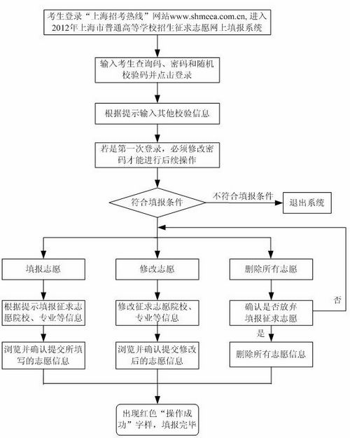 2012年,上海市普通高等學(xué)校招生第一批本科招生錄取工作中,投檔錄取后未完成招生計劃的招生院校將進行“征求志愿”。凡符合填報征求志愿條件的考生,可通過上海招考熱線網(wǎng)站(網(wǎng)址www.shmeea.com.cn)填報該批未完成招生計劃的院校和專業(yè),征求志愿同樣實行“平行志愿”填報方式。具體辦法如下。