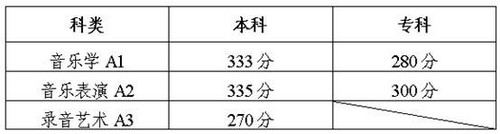 播音類(lèi):本科240分,專(zhuān)科230分。