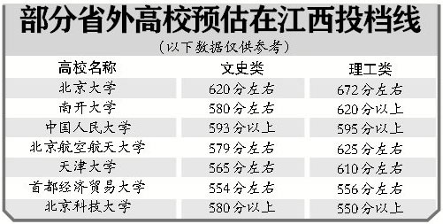 記者了解到,多所“985”高校有意在江西擴(kuò)招。中國人民大學(xué)招生工作人員告訴記者,今年該校預(yù)估的投檔線理工類為595分以上,文史類為593分以上。今年該校在江西很可能會有增錄的情況出現(xiàn),文史類成績?nèi)∨琶?20名以內(nèi),理工類成績?nèi)?00~600名的考生,都有被錄取的機(jī)會。