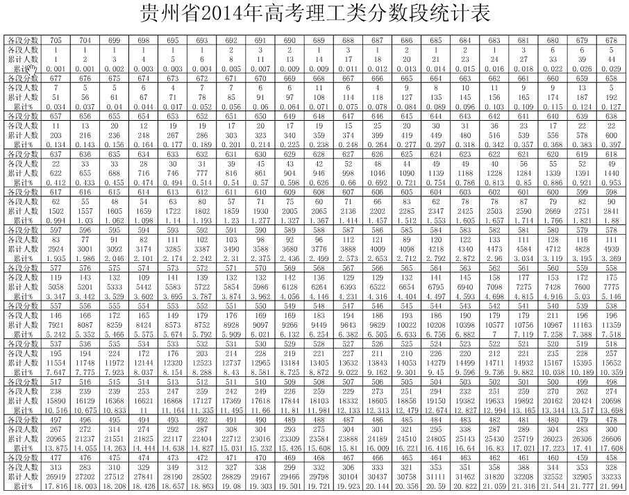 上一篇文章:貴州省2014年高考分?jǐn)?shù)段統(tǒng)計表(文史類)