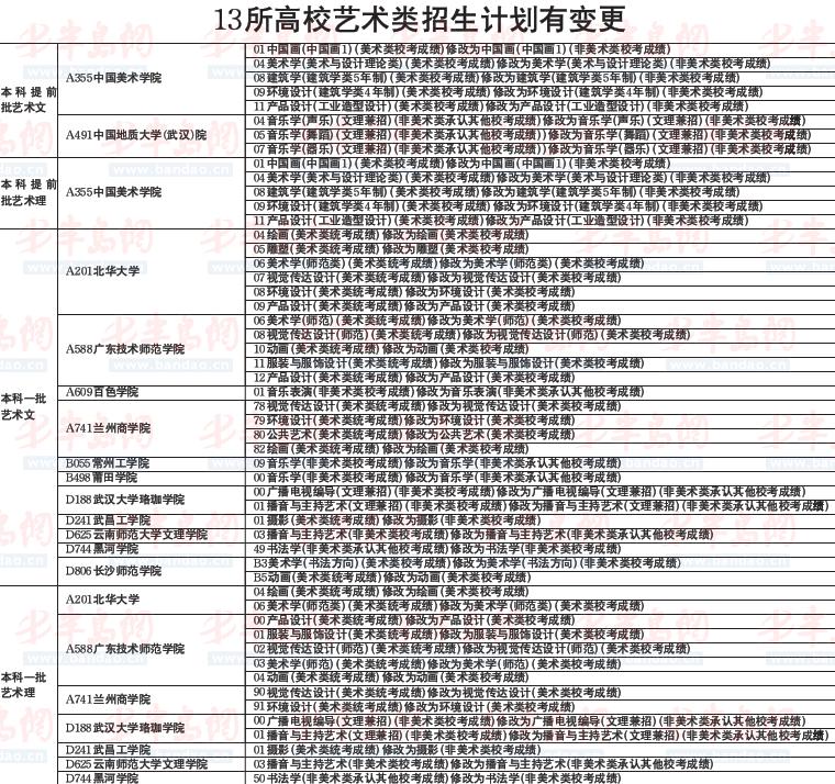 28日,山東省教育招生考試院發(fā)布了《2014年普通高等學(xué)校分專業(yè)計劃變更通知》。其中共有13所高校的專業(yè)計劃有所修改,全部涉及藝術(shù)類招考 ,考生要看仔細(xì)了。