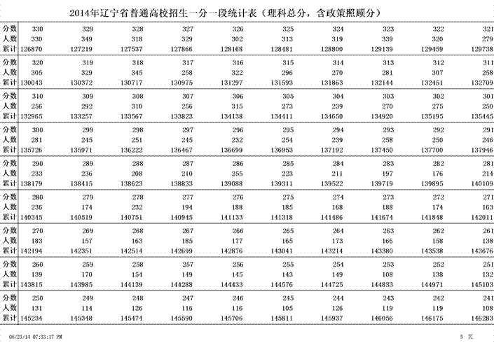 下一篇文章:2014年遼寧省普通高校招生一分一段統(tǒng)計(jì)表(文科總分,含政策照顧分)