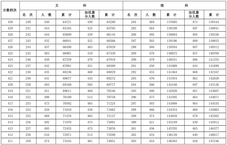 下一篇文章:2014年河北省普通高校招生文理科一分一檔統(tǒng)計表(410分-111分以下)