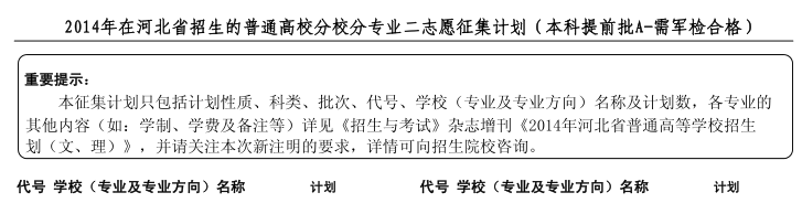 上一篇文章:2014年河北省普通高校招生二志愿征集計劃說明(本科提前批A)