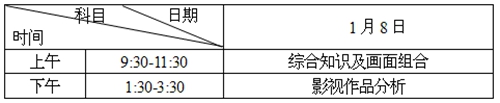考試時(shí)間安排與普高美術(shù)類相同。2016年1月8日考生憑《專業(yè)考試證》、第二代居民身份證到湖南師范大學(xué)工程與設(shè)計(jì)學(xué)院報(bào)到繳費(fèi),參加專業(yè)考試。