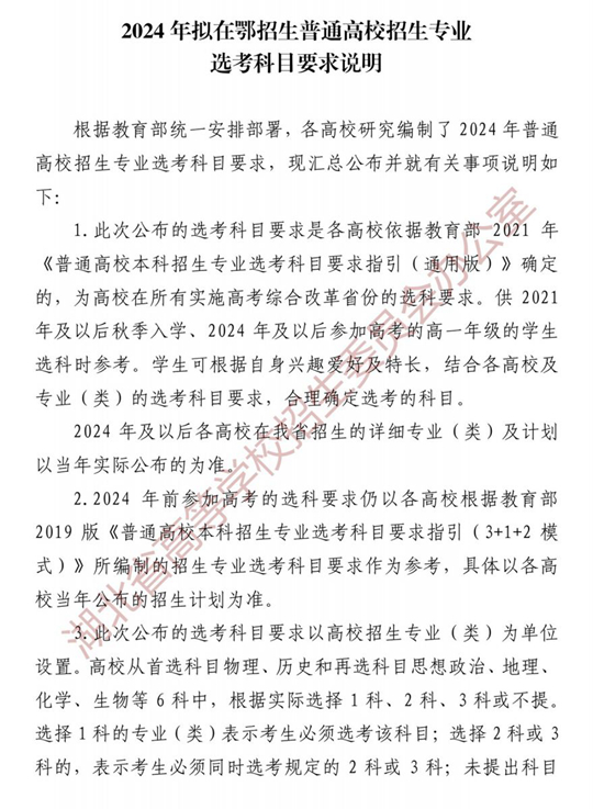 附件: 2024年擬在鄂招生普通高校招生專業(yè)(類)選考科目要求匯總表 點擊查看