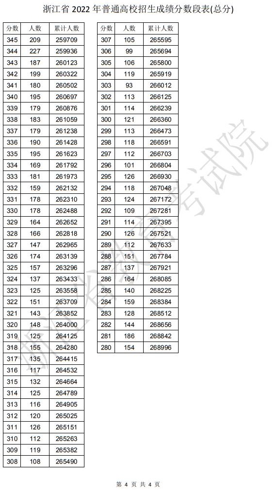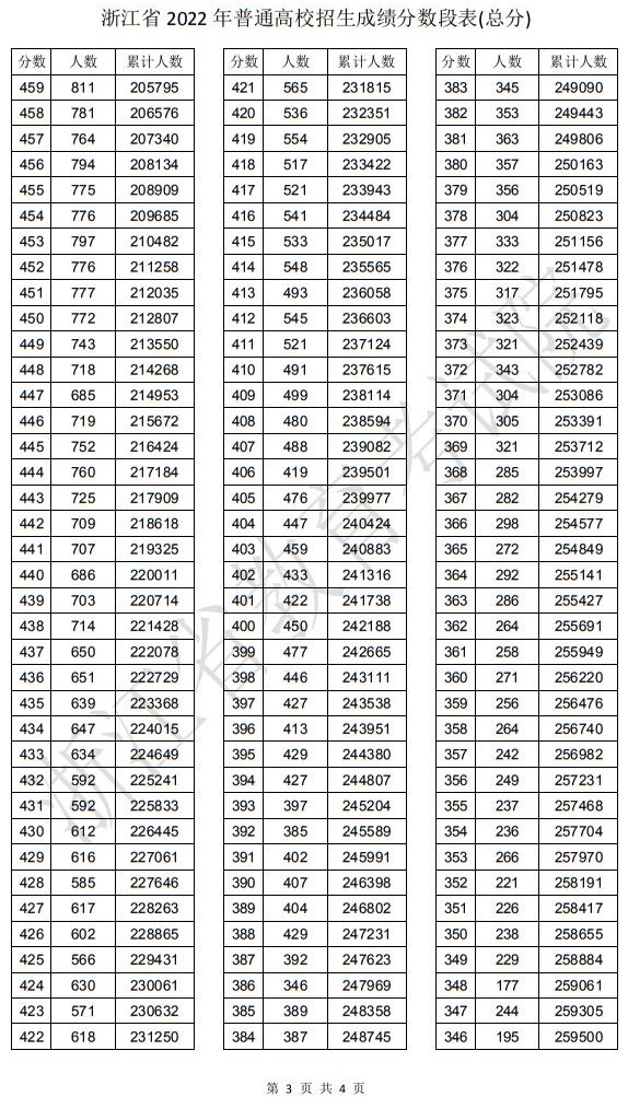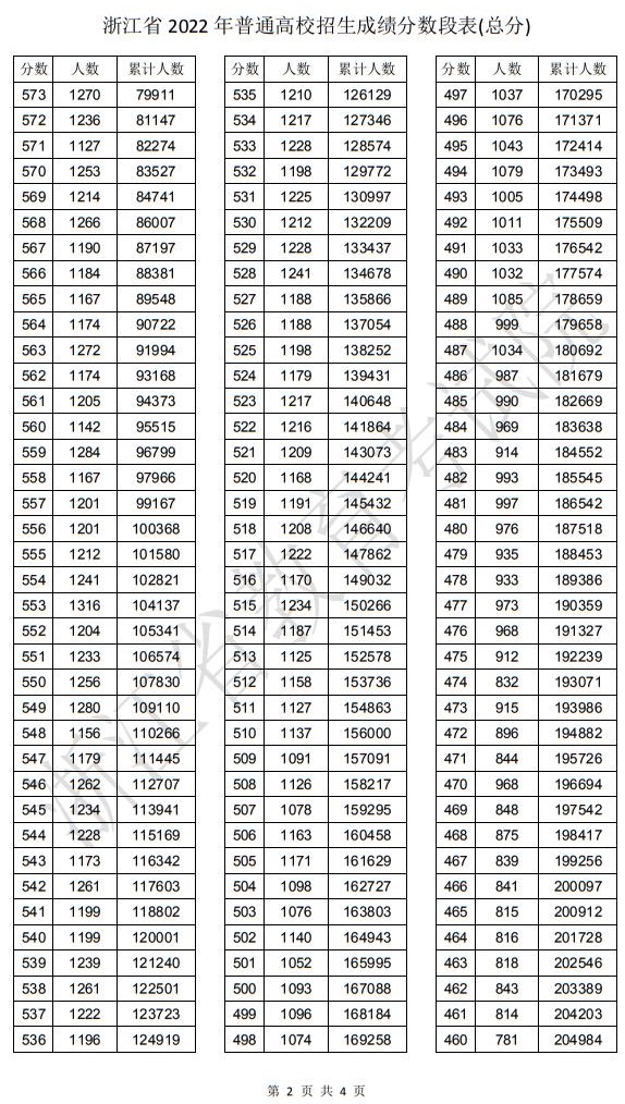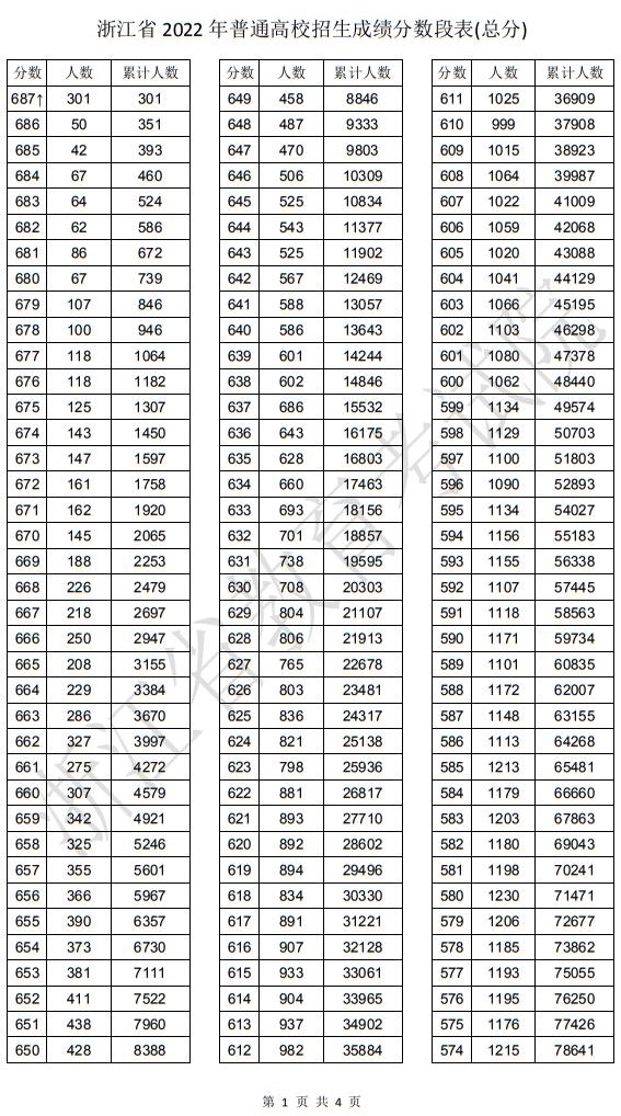 浙江省2022年普通高校招生成績(jī)分?jǐn)?shù)段表(總分)點(diǎn)擊下載PDF