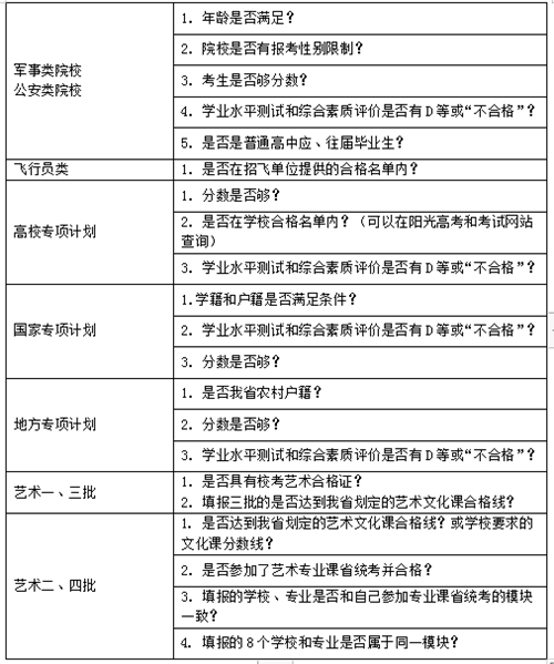 要特別注意的是,志愿系統(tǒng)邏輯檢查并不能包含招生院校(或專業(yè))的所有要求,一定要弄清招生院校(或專業(yè))對于身體條件、成績、戶籍等所有要求后再填報。