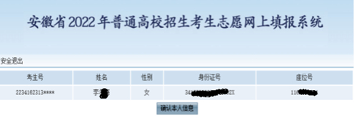 確認無誤后,輸入考生號(2234開頭的14位數(shù)字)提交志愿數(shù)據(jù)。
