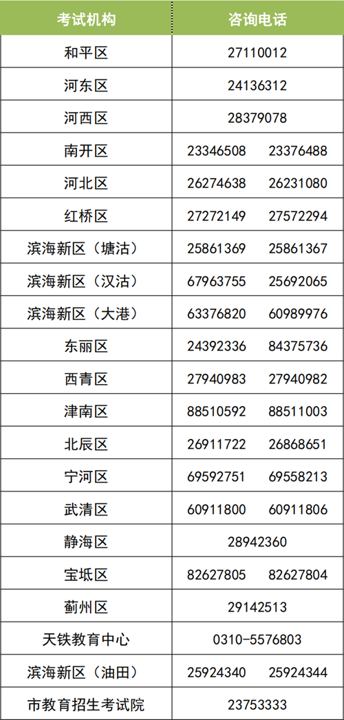 市、區(qū)考試機(jī)構(gòu)考生咨詢服務(wù)熱線如下: