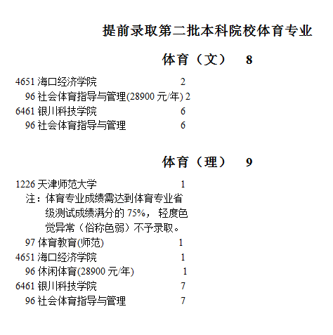 附件:寧夏2022年普通高校招生提前錄取第二批院校體育專業(yè)第二次征集缺額計劃院校、專業(yè)及名額