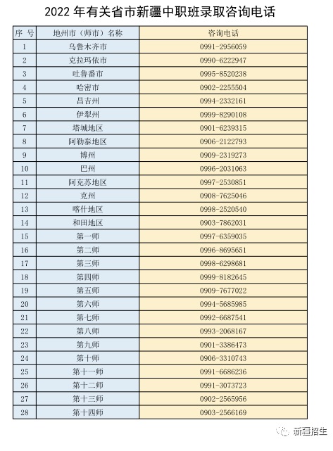 考生如遇疑問,可撥打各地(州、市)和兵團(tuán)師市教育局咨詢電話(詳見附表)咨詢。