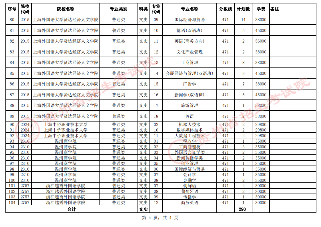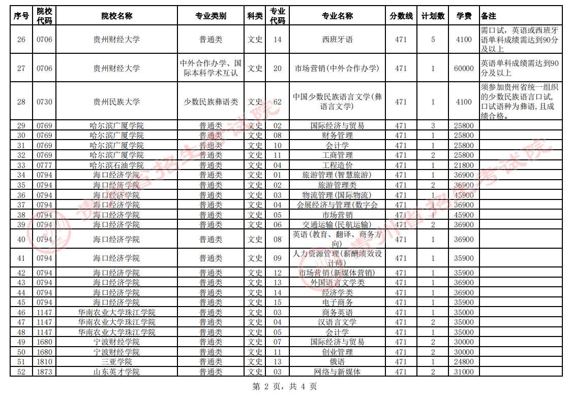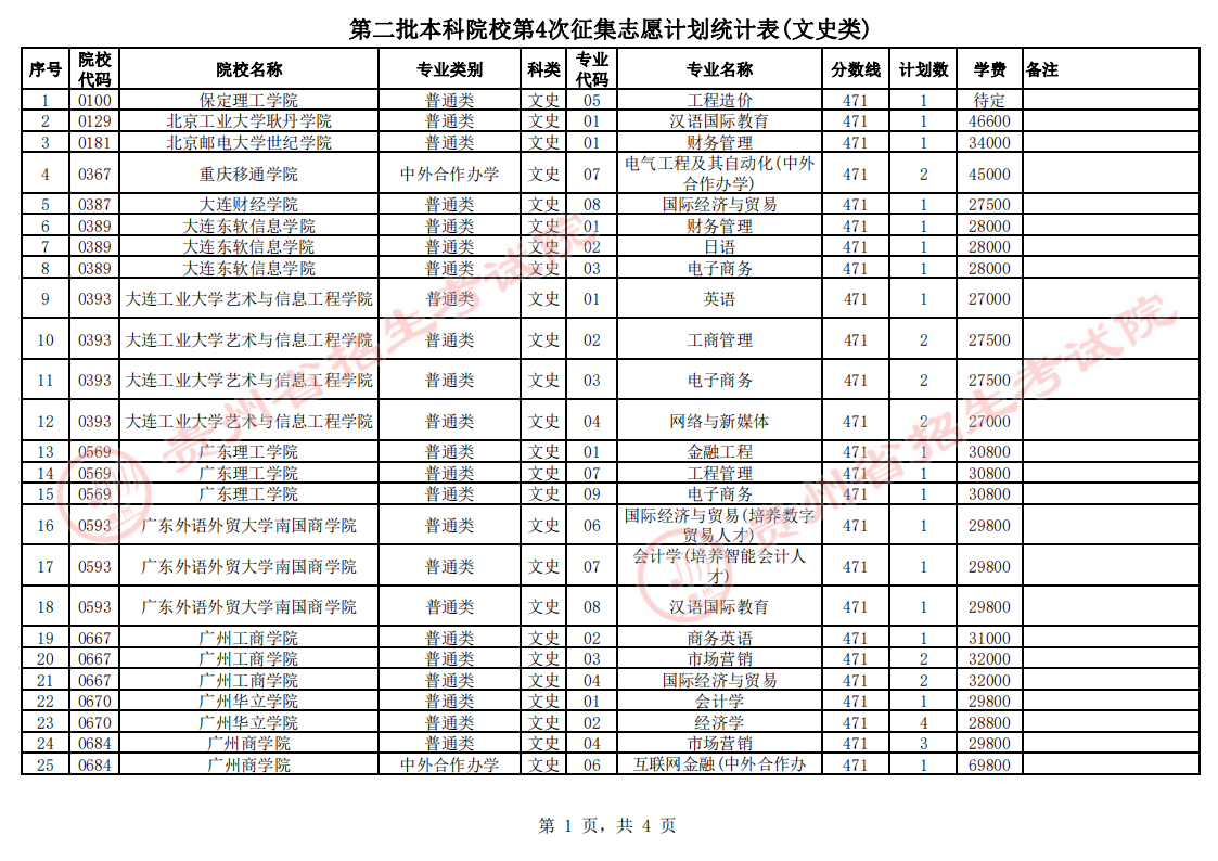2.第二批本科院校第4次征集志愿計劃統(tǒng)計表(文史類)
