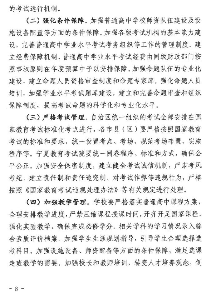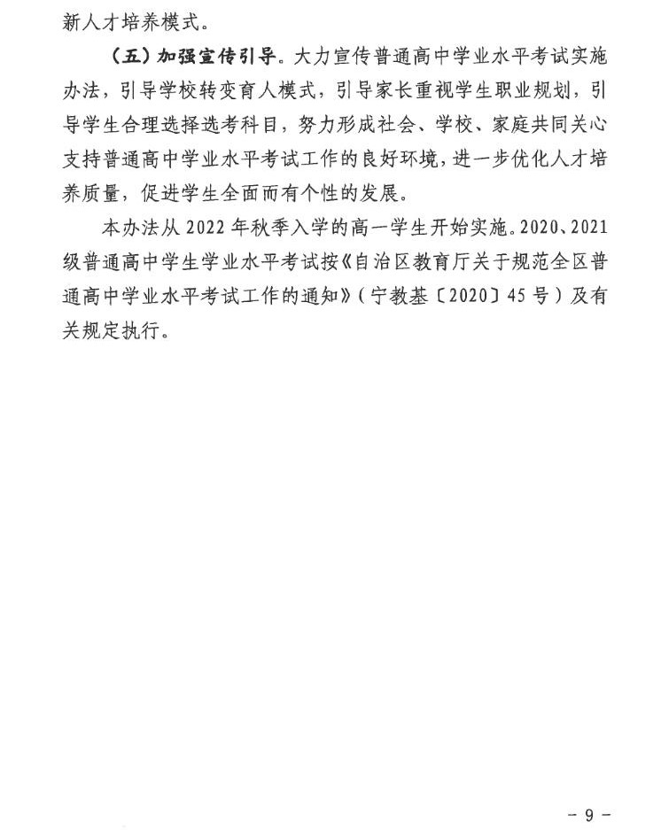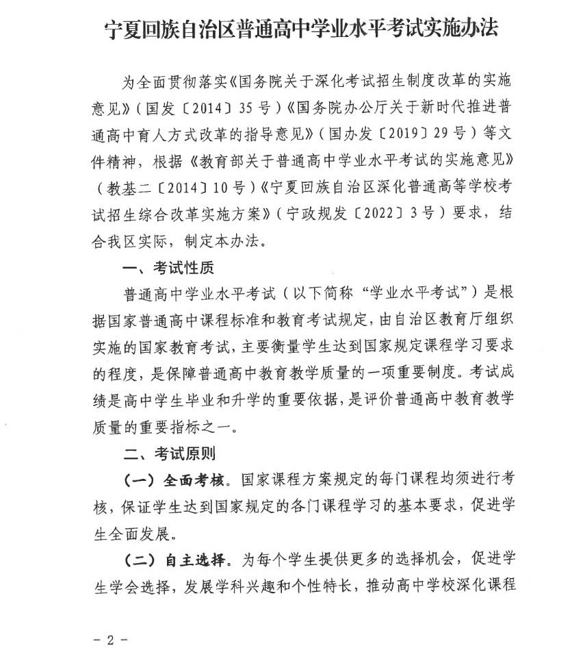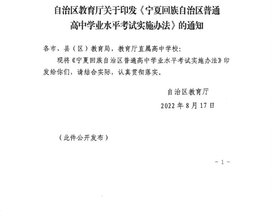 自治區(qū)教育廳關于印發(fā)《寧夏回族自治區(qū)普通高中學業(yè)水平考試實施辦法》的通知