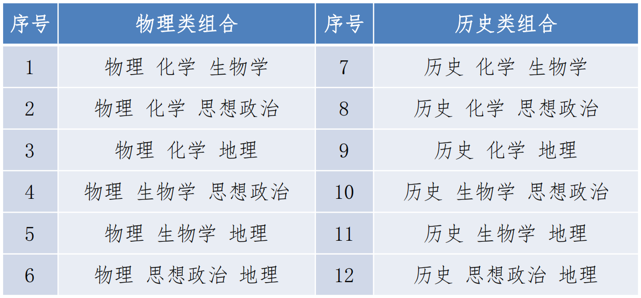 普通高校招生專業(yè)(類)選考科目要求針對“1+2”的首選和再選部分分為4類:各招生專業(yè)(類)從物理、歷史、思想政治、地理、化學(xué)、生物學(xué)6門科目中選擇1科、2科、3科或“不提科目要求”。選擇1科的專業(yè),表示考生必須選考該科目;選擇2科或3科的專業(yè),表示考生必須同時選考規(guī)定的2科或3科;“不提科目要求”的,表示考生在首選和再選科目中按規(guī)則選考任意3科均可報考。