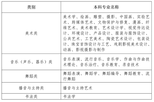 1.各考試類別與藝術(shù)類招生專業(yè)對(duì)應(yīng)表