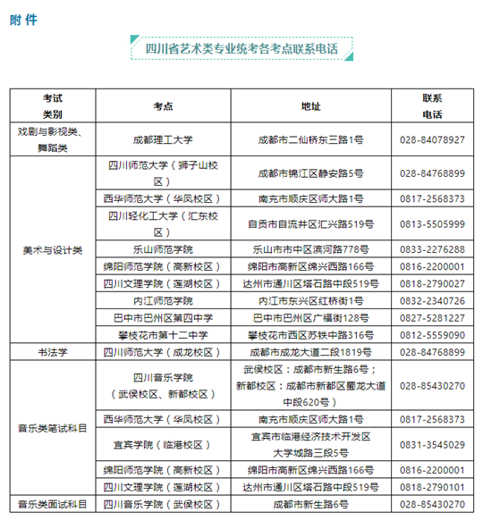 附件:四川省藝術(shù)類專業(yè)統(tǒng)考各考點(diǎn)聯(lián)系電話