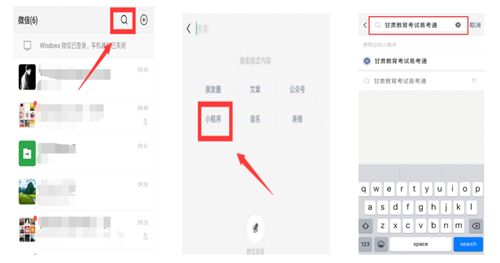 通過微信搜索小程序“甘肅教育考試易考通”進入。