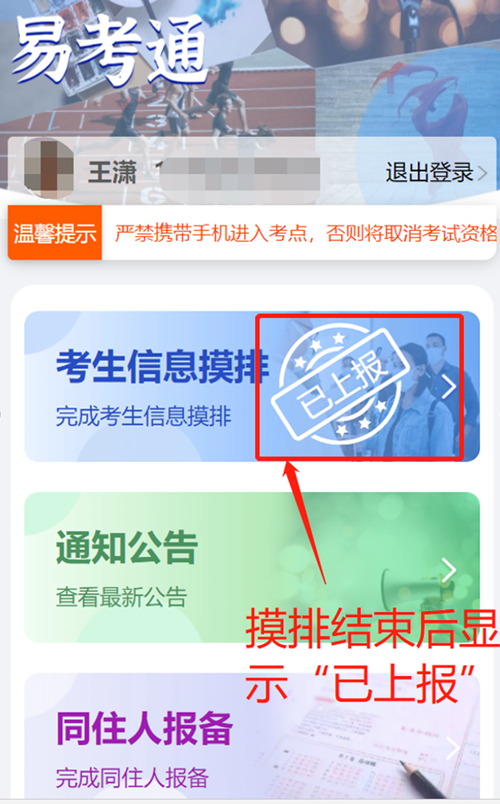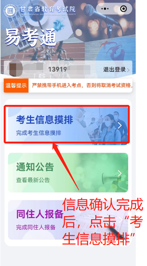 信息確認后,不要退出,繼續(xù)點擊“考生信息摸排”