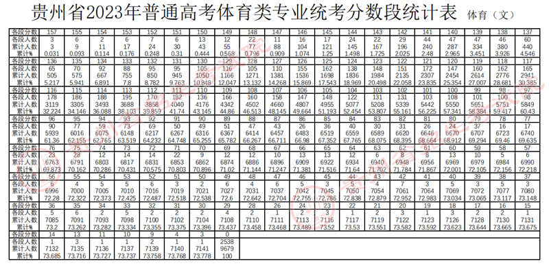 根據(jù)《貴州省招生委員會關(guān)于做好2023年普通高等學(xué)校藝術(shù)、體育類專業(yè)考試招生工作的通知》(黔招委〔2022〕28號)規(guī)定,劃定貴州省2023年普通高等學(xué)校招生體育類專業(yè)統(tǒng)考合格線為:97分。