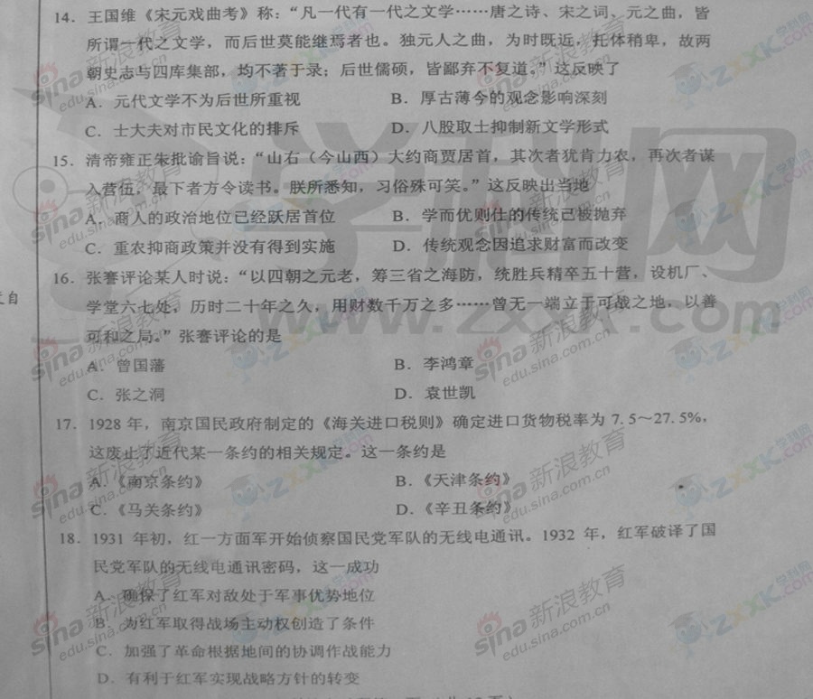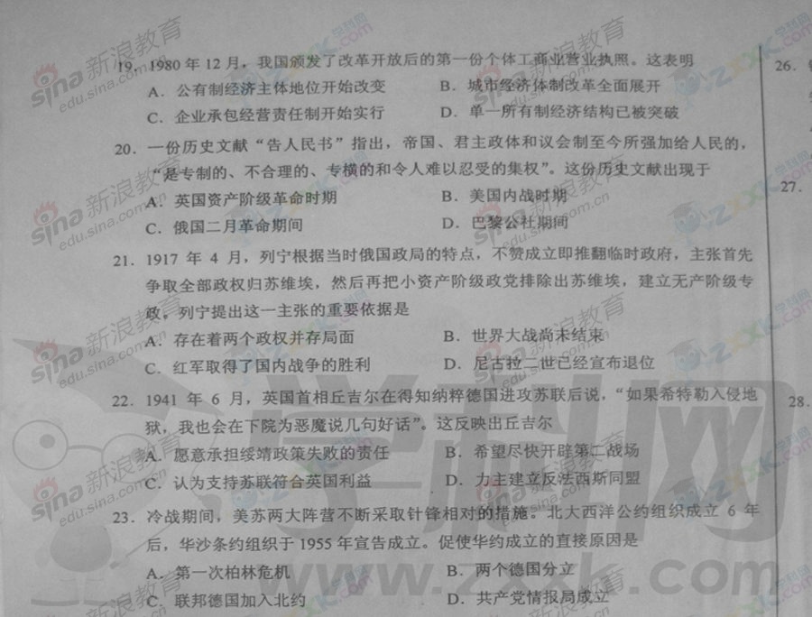 下一篇文章:2012年普通高等學(xué)校招生全國統(tǒng)一考試歷史簡評(四川卷)
