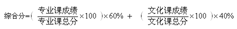 2、對(duì)報(bào)考我校藝術(shù)類專業(yè)的外省考生,在專業(yè)課、文化課成績(jī)均為合格的基礎(chǔ)上,將專業(yè)課與文化課成績(jī)折算為百分制后,按專業(yè)課成績(jī)占60%,文化課成績(jī)占40%,形成綜合分,從高分到低分擇優(yōu)錄取。