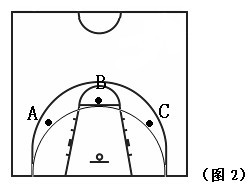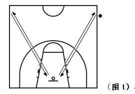 以籃球投影中心為圓心,以該點到罰球線的距離為半徑,劃一圓孤。開始時考生在孤線處作跳投,并開始計時;投籃后自己搶籃板球,再運至孤線外再跳投,連續(xù)做一分鐘(女生投籃可做定位投,也可以做跳投)。(見圖2)