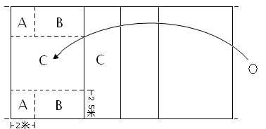 d墊球落點在B區(qū)外得0分。