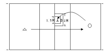 如圖所示??忌诎l(fā)球區(qū)用上手或勾手發(fā)球6次,要求所發(fā)出的球有一定的速度和力量,對飛行速度慢、力量小的發(fā)球,則在相應(yīng)得分中扣去0.3分。