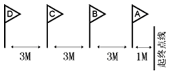 (1)場地設(shè)備:起終點(diǎn)線距A桿1米,各桿之間3米,總長度10米。