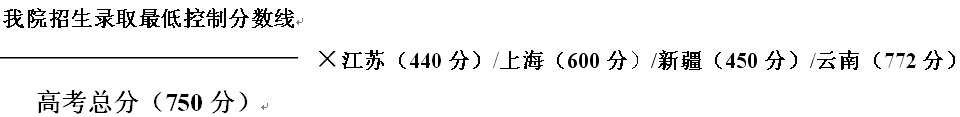 針對江蘇、上海、新疆、云南高考科目及分值,按以下折算公式確定各專業(yè)分?jǐn)?shù)線: