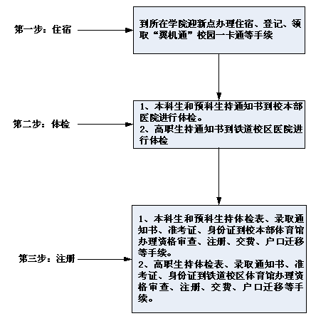 根據(jù)教育部和公安部的有關(guān)文件精神,新生可自愿遷移戶籍關(guān)系,不愿遷移戶籍關(guān)系的學(xué)校不作要求,但由于未遷戶口造成的后果由學(xué)生自己承擔(dān)。遷移戶籍的本科生和預(yù)科生入學(xué)報(bào)到時(shí)須持入學(xué)通知書、戶口遷移證、居民身份證到報(bào)到大廳(體育館)戶籍辦理處審核,經(jīng)審核驗(yàn)收后統(tǒng)一辦理落戶手續(xù)。遷移戶籍的高職生持入學(xué)通知書、戶口遷移證、居民身份證到鐵道校區(qū)體育館辦理戶籍遷移手續(xù)。