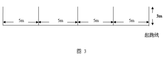 ?、僬鄯蹬芸傞L20米,起跑線長3米,每5米一個(gè)段落,并有一個(gè)標(biāo)志物(見圖3)。