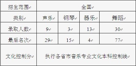 備注:音樂表演(器樂方向)錄取最后名次為某一器樂種類錄取的最后名次。