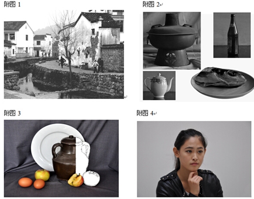 三、模擬寫生內(nèi)容:一個火鍋,一個茶壺,一個啤酒瓶,一個魚頭,一個瓷盤。(圖片小樣見附圖2)