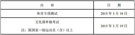 符合陜西師范大學(xué) 2015 年高水平運動隊招生考試報名條件的考生,必須參加我校組織的高水平運動隊招生體育專項測試。國家一級(含)以上運動員參加我校組織的文化課單獨考試,考試科目:語文、數(shù)學(xué)、英語,其他運動員必須在生源所在省(直轄市、自治區(qū))參加普通高等學(xué)校招生考試。