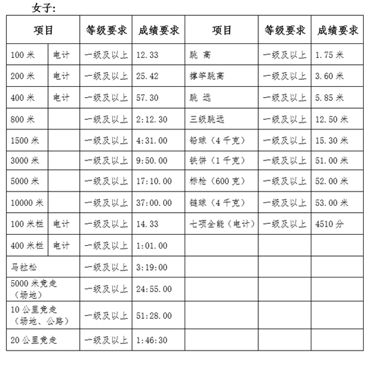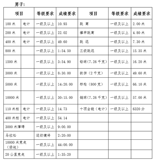 附件二:報考田徑項目運(yùn)動等級及成績要求