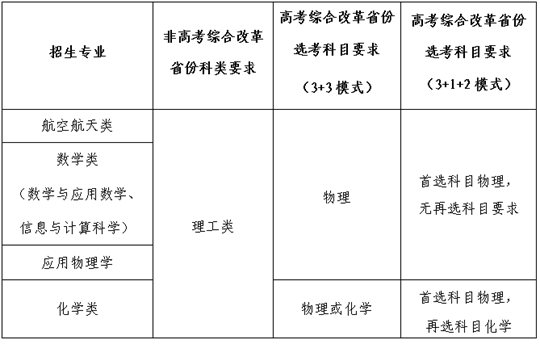 結(jié)合我校相關(guān)專業(yè)優(yōu)勢與辦學(xué)特色,強基計劃招生專業(yè)有航空航天類、數(shù)學(xué)類(數(shù)學(xué)與應(yīng)用數(shù)學(xué)、信息與計算科學(xué))、應(yīng)用物理學(xué)、化學(xué)類,招生計劃詳見報名平臺。