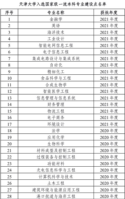 近日,教育部辦公廳印發(fā)《關(guān)于公布2021年度國(guó)家級(jí)和省級(jí)一流本科專業(yè)建設(shè)點(diǎn)名單的通知》,天津大學(xué)17個(gè)專業(yè)獲批國(guó)家級(jí)一流本科專業(yè)建設(shè)點(diǎn),15個(gè)專業(yè)獲批市級(jí)一流本科專業(yè)建設(shè)點(diǎn)。截至目前,在一流專業(yè)“雙萬(wàn)計(jì)劃”建設(shè)中,天津大學(xué)共獲批69個(gè)一流本科專業(yè)建設(shè)點(diǎn),其中國(guó)家級(jí)54個(gè)、省級(jí)15個(gè),國(guó)家級(jí)一流本科專業(yè)建設(shè)點(diǎn)獲批率達(dá)95%,專業(yè)類覆蓋率100%,專業(yè)優(yōu)質(zhì)率居全國(guó)高校前列。
