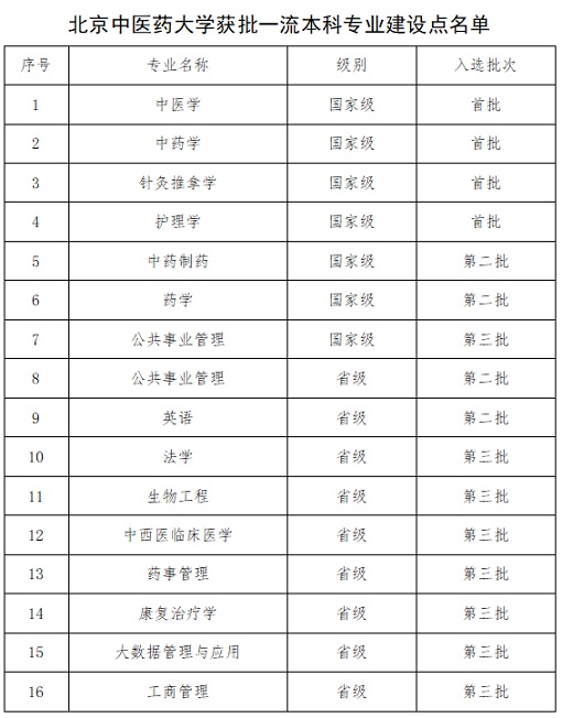 近日,教育部辦公廳發(fā)布《關(guān)于公布2021年度國(guó)家級(jí)和省級(jí)一流本科專業(yè)建設(shè)點(diǎn)名單的通知》(教高廳函〔2022〕14號(hào)),北京中醫(yī)藥大學(xué)公共事業(yè)管理專業(yè)獲批國(guó)家級(jí)一流本科專業(yè)建設(shè)點(diǎn),法學(xué)、生物工程、中西醫(yī)臨床醫(yī)學(xué)、藥事管理、康復(fù)治療學(xué)、大數(shù)據(jù)管理與應(yīng)用、工商管理7個(gè)專業(yè)獲批省級(jí)一流本科專業(yè)建設(shè)點(diǎn)。