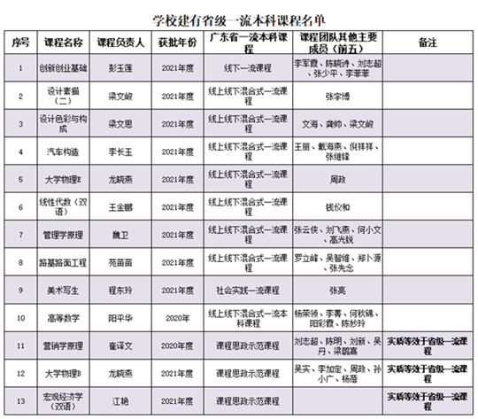 廣州城市理工學(xué)院13門省級(jí)一流課程一覽表(馮慧雅 提供)