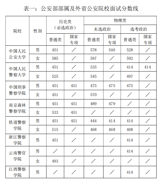 湖南省公安廳、湖南省教育考試院根據(jù)公安普通高等院校在湘招收公安專業(yè)學(xué)生的工作要求,劃定了各相關(guān)院校入圍面試分?jǐn)?shù)線,現(xiàn)公布如下: