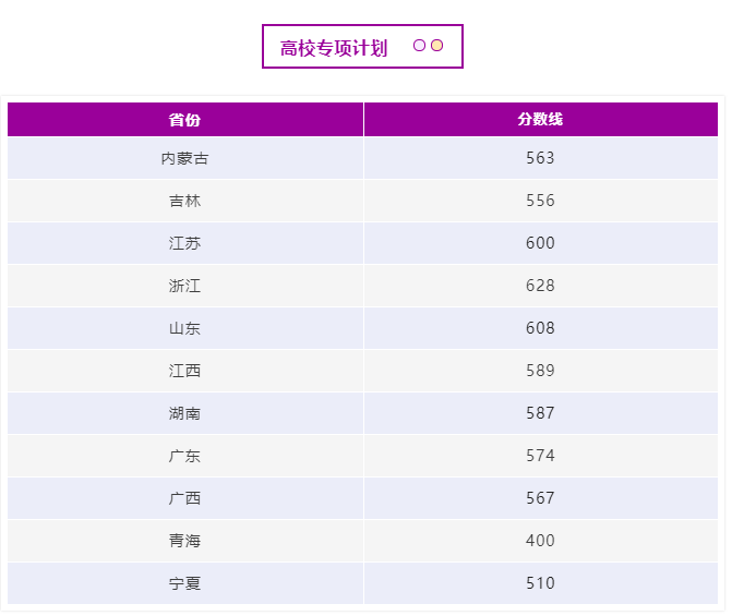 ★ 高校專項(xiàng)計(jì)劃:內(nèi)蒙古、吉林、江蘇、浙江、山東、江西、湖南、廣東、廣西、青海、寧夏;
