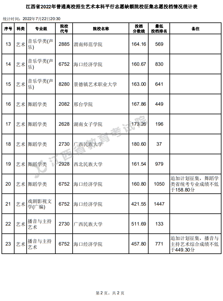 附件:江西省2022年普通高校招生藝術(shù)本科平行志愿缺額院校征集志愿投檔情況統(tǒng)計(jì)表.pdf 點(diǎn)擊查看