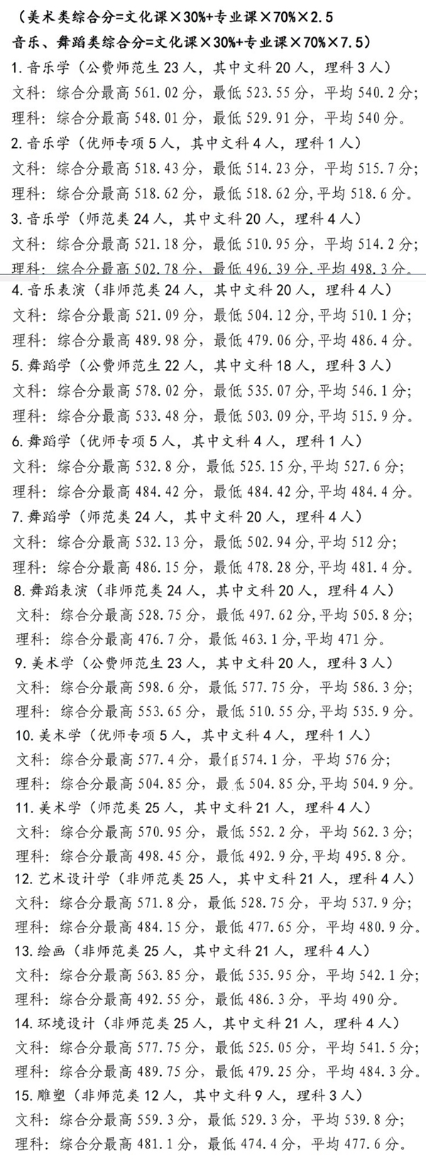 外?。核囆g(shù)類專業(yè)按專業(yè)成績(jī)由高分到低分錄取,若專業(yè)成績(jī)相同,按投檔成績(jī)由高分到低分錄取,若均相同按文綜、理綜成績(jī)由高分到低分錄取。